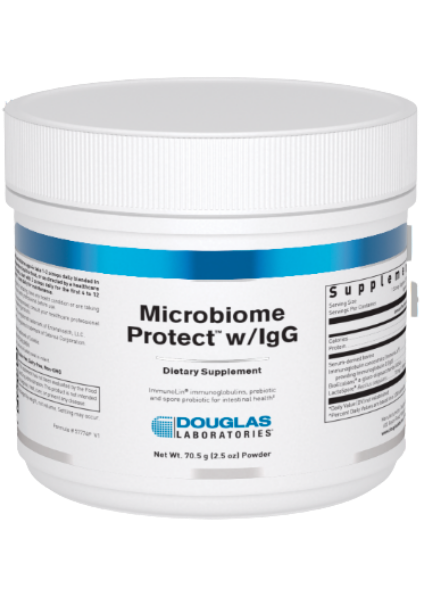 Microbiome Protect™ w/IgG is a combination of clinically studied dairy-free ImmunoLin® immunoglobulins, Bacillus coagulans probiotic and α-gluco-oligosaccharide prebiotic to support and protect the intestinal microbiome. As a neutral tasting powder, Microbiome Protect™ can be easily added to liquids or foods.‡