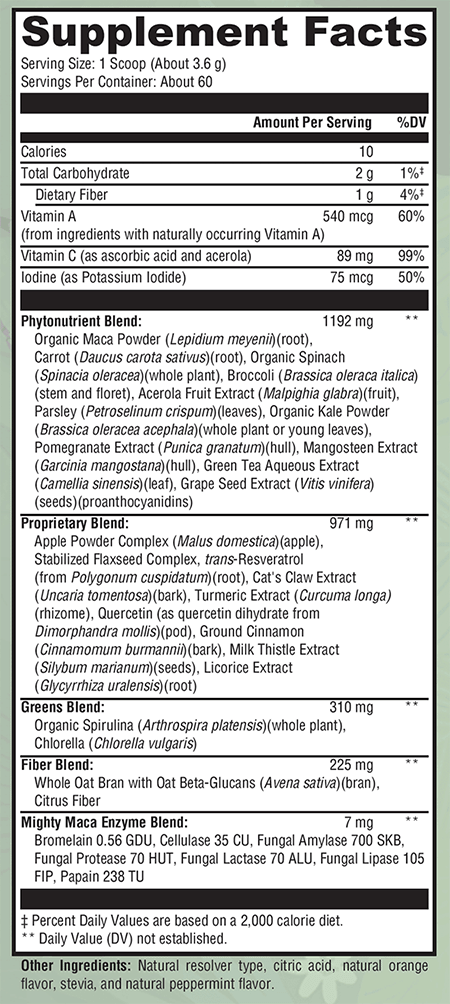 Mighty Maca® Plus is the superfood green drink with 30+ amazing superfood ingredients that: