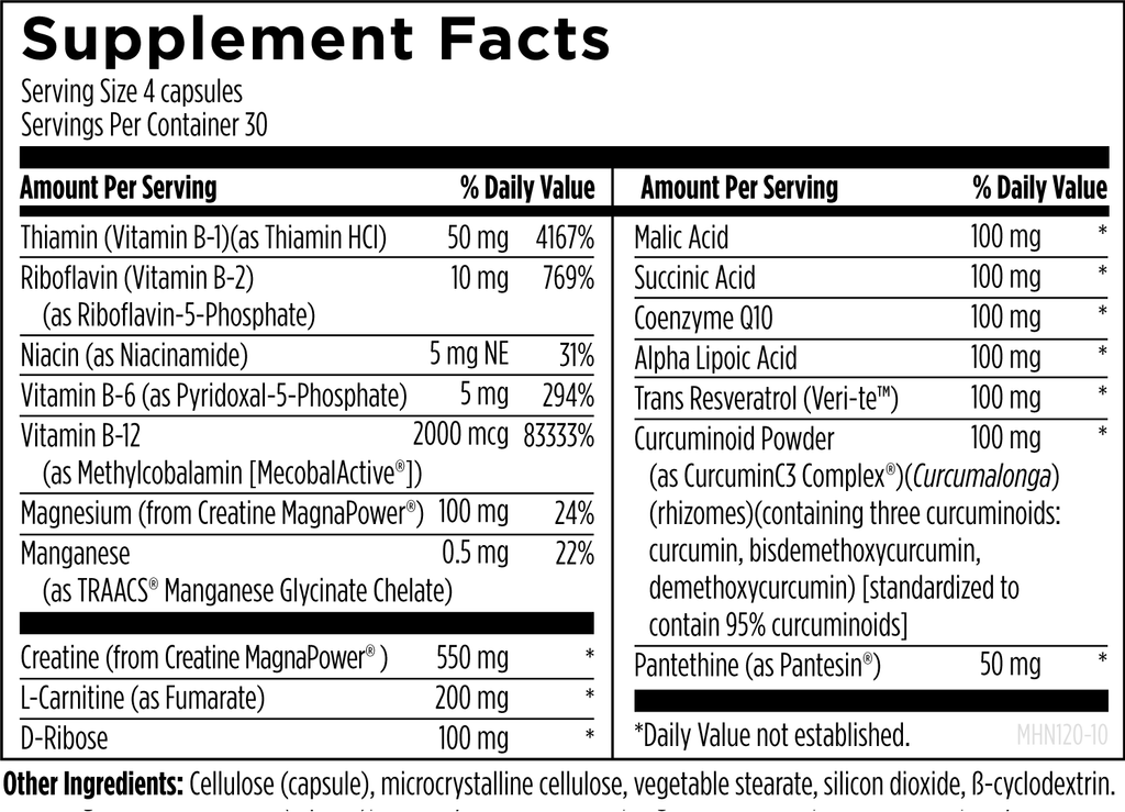 Mitochondrial NRG™ is a formulary blend of nutrients, nutraceuticals, botanicals, and Krebs cycle intermediates designed to support efficient mitochondrial metabolism and energy (adenosine triphosphate [ATP]) production for increased vitality.*