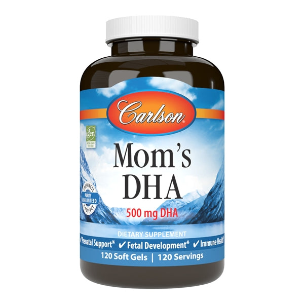 Recent studies have found DHA is especially important during pregnancy and lactation. During pregnancy, DHA supports healthy brain function and mood in moms and promotes healthy brain and vision development in growing children. When taken after pregnancy, DHA can help enhance the quality of breast milk. Just one Mom's DHA soft gel provides 500 mg of DHA. And like all Carlson omega-3s, they're tested by an FDA-registered laboratory for freshness, potency, and purity.