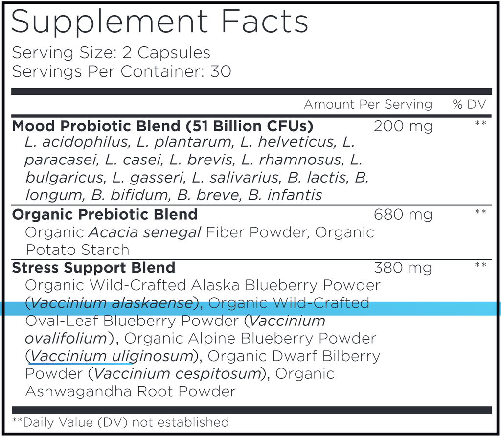 This supplement also features an organic stress support blend of wild-crafted Alaska blueberry powder, ashwagandha, wild-crafted oval-leaf blueberry powder, dwarf bilberry powder & alpine blueberry powder. This formula provides an organic prebiotic blend as well. Shelf-stable. Doesn’t require refrigeration.