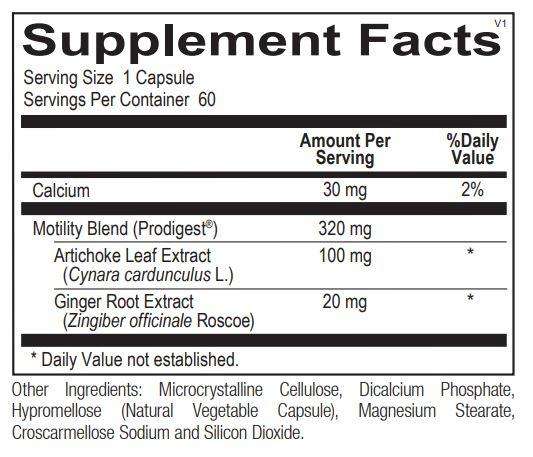 OVERVIEW: Motility PRO is a combination of ginger (Zingiber officinale) and artichoke leaf extract (Cynara cardunculus L.) delivered at a clinically proven dose to restore gastric motility. This distinctive blend of bioactives promotes contractions in the migrating motor complex, helping to restore proper motility, which ensures the steady flow of food particles and bacteria through the small intestine. In addition, it provides support for improved digestion and relief from temporary gas, bloating and associated GI discomfort.