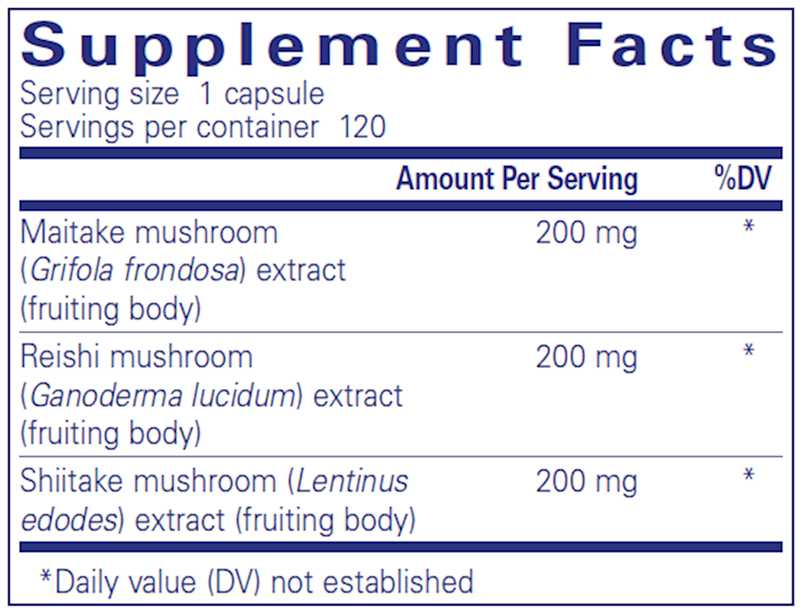 M/R/S Mushroom Formula combines a dynamic combination of maitake, reishi and shiitake mushroom to help promote optimal immune system health. M/R/S Mushroom Formula may also support physiological health including liver, cardiovascular and cellular health.