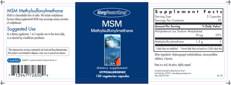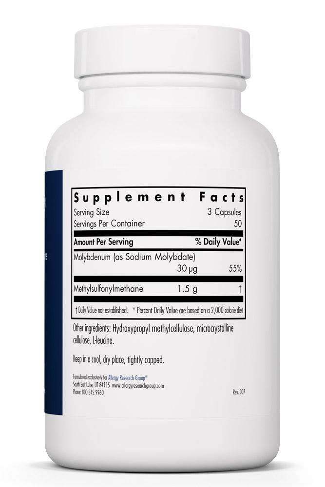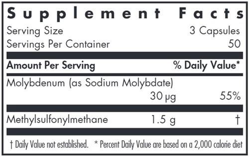 MSM is a bioavailable form of sulfur related to dimethylsulfoxide (DMSO). Sulfur is an element found in all living organisms and 85% of it is provided by MSM and related compounds. We include molybdenum because taking supplemental MSM may encourage urinary excretion of molybdenum.*