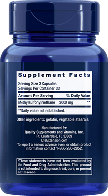 Life Extension's MSM formulation helps support joint comfort after exercise, promotes joint mobility and function and helps inhibit oxidative stress.