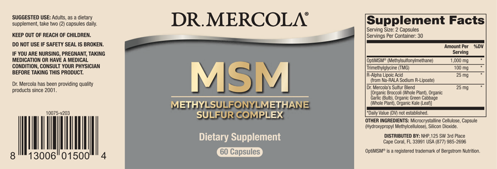 MSM Sulfur Complex provides four foundational sources of sulfur to help provide your body with what it needs. Combining OptiMSM®, TMG, R-Alpha Lipoic Acid and an Organic Sulfur Vegetable Blend, this formula supplies your body with rich sources of this key nutrient to: