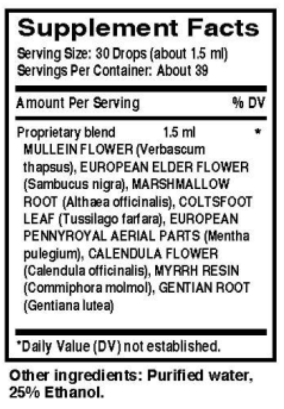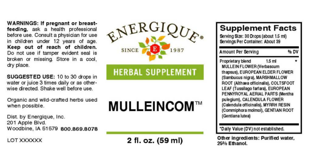Energique MULLEINCOM™ features mullein, European elder, marshmallow root, coltsfoot, European pennyroyal, calendula, myrrh, and gentian to support a healthy respiratory system.*