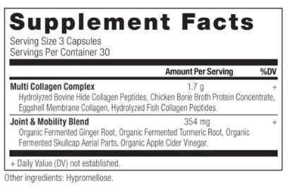 There is no other type of collagen capsule like this on the planet. Brought to you in easy-to-use, encapsulated form and powered by an ancient fermentation process that not only breaks down the collagen peptides into more absorbable forms but also helps maximize collagen support within the body. This is the most effortless way to tap into the joint-nourishing benefits of collagen when you’re on the go, if you want to add a collagen boost to your current routine or if you simply aren’t a fan of collagen powder. Unlike most products out there, this Multi Collagen Capsule formula features ten types of collagen from four food sources, including collagen sourced from fermented eggshell membrane, the secret ingredient for full-body transformation. What does this mean? You no longer have to choose between bovine or marine collagen and instead get the most powerful collagen types all in one joint- and flexibility-supporting formulation.