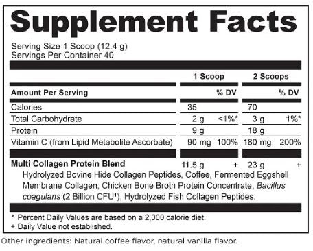 This unsweetened cold brew flavor was designed to bring coffee and collagen together under one lid. Mild in boldness and offering a low to moderate caffeine level, our cold brew flavor is ideal for coffee-flavored morning mixes (think nut milk or oatmeal) or an afternoon pick-me-up. Multi Collagen Protein gives you support for your skin, hair, nails, joints and gut. . It’s more than just collagen—it’s clinically studied ingredients proven to deliver REAL RESULTS. While other collagen supplements may have clinically studied ingredients in their formula, ours is currently the only one with a fermented collagen ingredient with human clinical studies behind it.