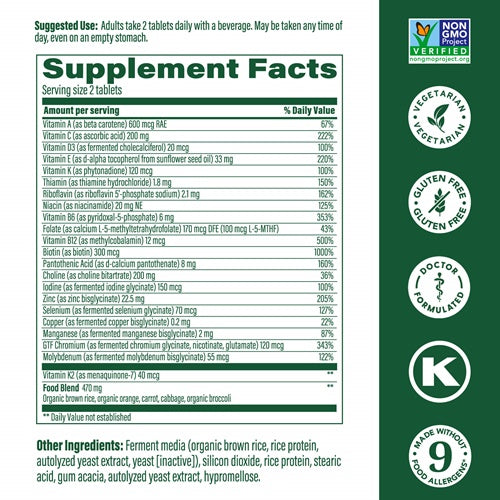 MegaFood® Multi for Men is formulated by an award-winning integrative medical physician, Tieraona Low Dog, M.D., specifically for men who want a multi without iron, magnesium or calcium (not recommended for men unless requested by a healthcare practitioner) that supports their optimal health and wellbeing.* Megafood's tablets are gentle enough to be taken on an empty stomach, and are crafted with a host of supportive FoodState® Vitamins and Minerals, including B vitamins to support healthy energy function and nervous system health*, choline for healthy memory and cognitive function*, iodine, and methylated folate and B12, plus the active form of B6, P5P.