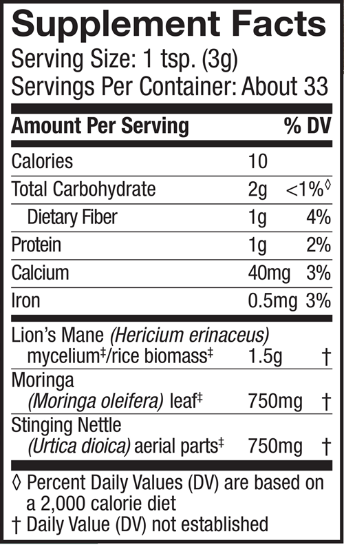 Directions: Adults take 1 teaspoon 1-2 times per day, which can be mixed into your favorite food or beverage.