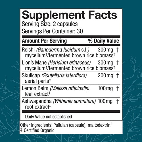 Stress can trigger a fight or flight response causing hormones such as adrenaline and cortisol to surge through the body. MycoBotanicals® Stress Decompress®* is a custom combination of mushrooms and herbs formulated to promote natural calm and tranquility.*