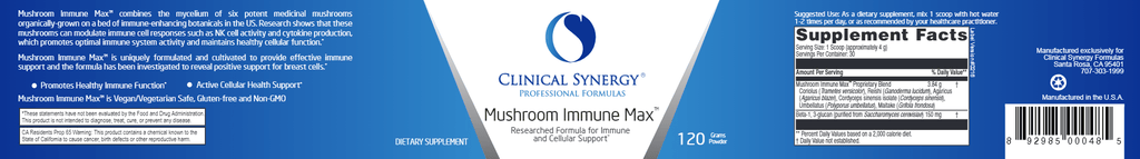 Mycoceutics® Immune Max is formulated to provide intensive daily immune benefits, deliver fast—acting support against occasional colds and flus, and reinforce long-term immune function. This formula has also been shown in research to provide active support for healthy breast cells.*