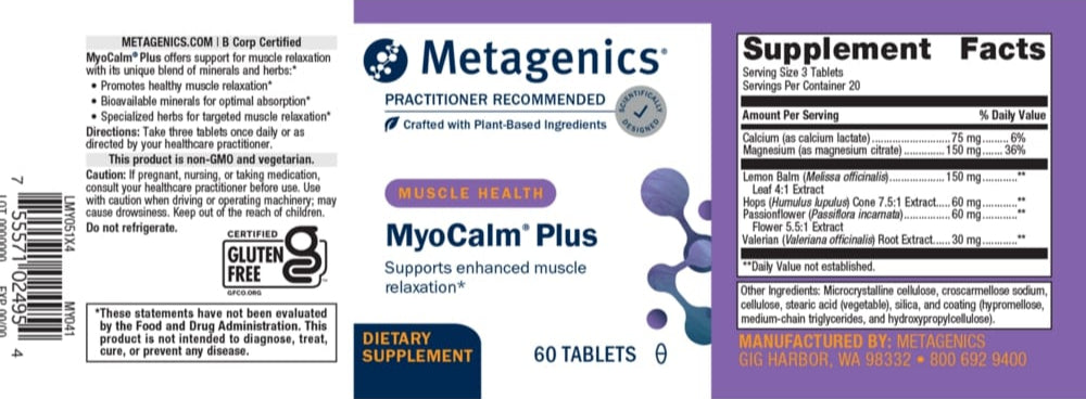 MyoCalm® Plus is an exceptional blend of bioavailable minerals and specialized herbs that is designed to provide comprehensive support for neuromuscular relaxation. The components of this formula work in concert to provide enhanced support for healthy muscle relaxation.*