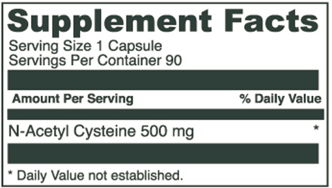 Amount Per Serving: N-Acetyl Cysteine 500mg