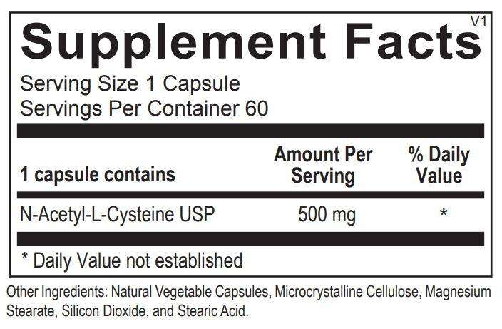 Each capsule of the N-Acetyl Cysteine formulation includes 500 mg of this versatile amino acid.