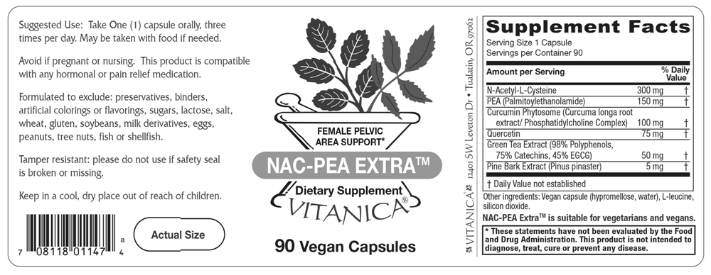 NAC-PEA Extra focuses on the unique ingredients of N-Acetyl-L-Cysteine and Palmitoylethanolamide and other antioxidant-rich ingredients in support of the healthy cells of the female pelvic area tissues.