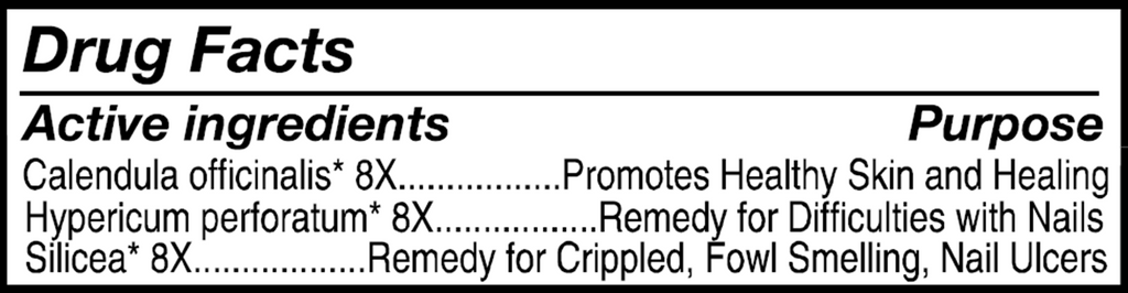 Uses: For relief and treatment of pain, soreness, and inflammation from nail fungus. Symptoms: Discolored nails, brittle nails, distorted nails.