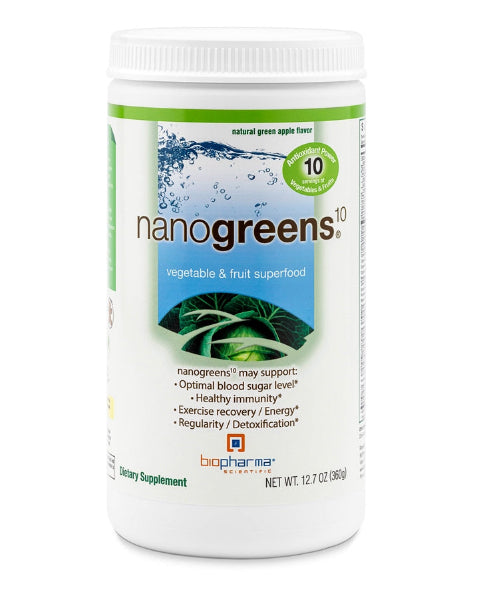 SCIENCE-BASED: Nanogreens is the #1 Doctor recommended fruit and vegetable greens supplement powder. It supports optimal blood sugar levels, healthy immunity, exercise recovery, and natural energy. Nanogreens also supports cellular nourishment and protection, can assist your weight-loss efforts by reducing your appetite and improving metabolism and can help to maintain strong bones, and slow signs of aging.