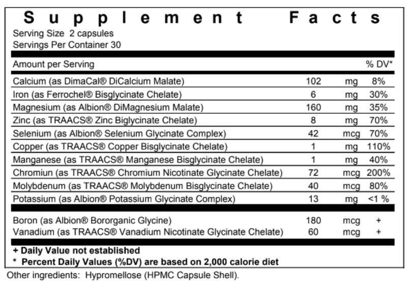 SCIENCE-BASED: Your body cannot create minerals and you may not be getting enough from the foods that you eat. Nanominerals Features: Calcium, Magnesium, Potassium, Chromium, Zinc, Manganese, Iron, Selenium, Copper, Molybdenum, Boron and Vanadium. Even if you are eating tons of leafy greens, soil depletion and lack of variety or time can mean missing out on some good minerals that keep your body performing at its best.
