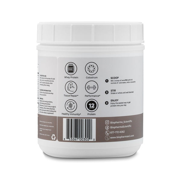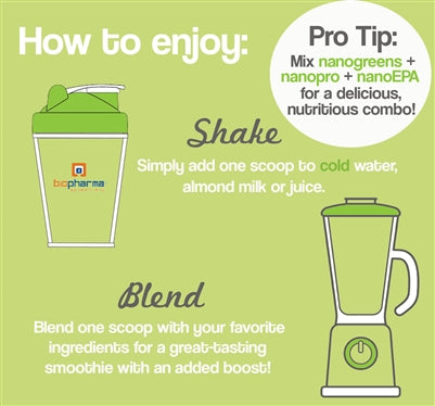How To Enjoy: Mix one scoop of nanopro with 6-8 ounces cold water, juice or milk. Shake or blend and enjoy!