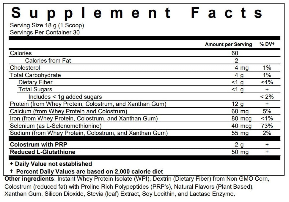 We enhance our protein with colostrum to help support the immune system and promote regeneration for healthy tissue, organs, bones, brain function and lean muscle. We also add a powerful yet gentle detoxifier to help remove harmful toxins from stress and the environment. Pre-biotic fiber is also added to help keep your intestinal tract happy. We're all about giving you more in one product, so you have to take less all together. We make lifelong wellness easy. Welcome to the next generation of nutrition!