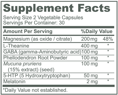 For relief of occasional sleeplessness only. Do not exceed recommended dose. This product is not intended for pregnant or nursing mothers, children under the age of 18, or individuals taking any prescription medication including anti-depressants. Avoid driving or performing other potentially dangerous tasks while taking this formula. If you have questions about the advisability of taking this product, consult a physician prior to use. This product is manufactured and packaged in a facility which may also process milk, soy, wheat, egg, peanuts, tree nuts, fish and crustacean shellfish. Keep out of reach of children.