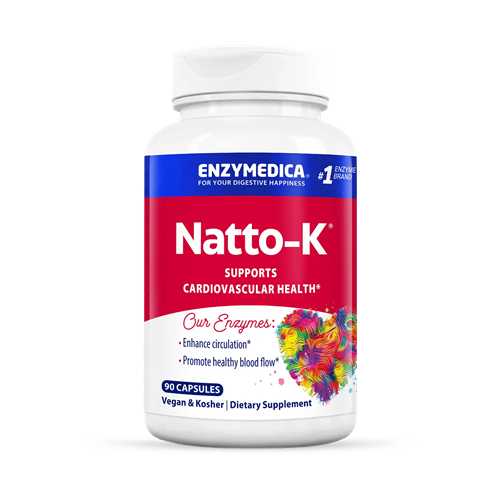 Natto-K™ contains specialized blends of enzymes including Nattokinase with NSK-SD®—the only form of nattokinase that does not contain vitamin K2—to enhance the body’s production of plasmin.* Plasmin breaks down excess fibrin, which may improve circulation.* Natto-K may help maintain already healthy levels of blood clotting factors within a healthy range.*