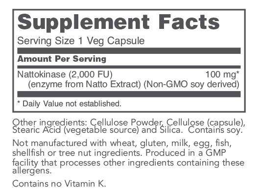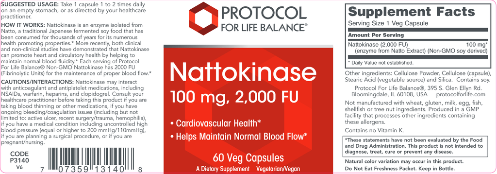 Nattokinase is an enzyme isolated from Natto, a traditional Japanese fermented soy food that has been consumed for thousands of years for its numerous health promoting properties.* More recently, both clinical and non-clinical studies have demonstrated that Nattokinase can promote heart and circulatory health by helping to maintain normal blood fluidity.* Each serving of Protocol For Life Balance® Non-GMO Nattokinase has 2000 FU (Fibrinolytic Units) for the maintenance of proper blood flow.*