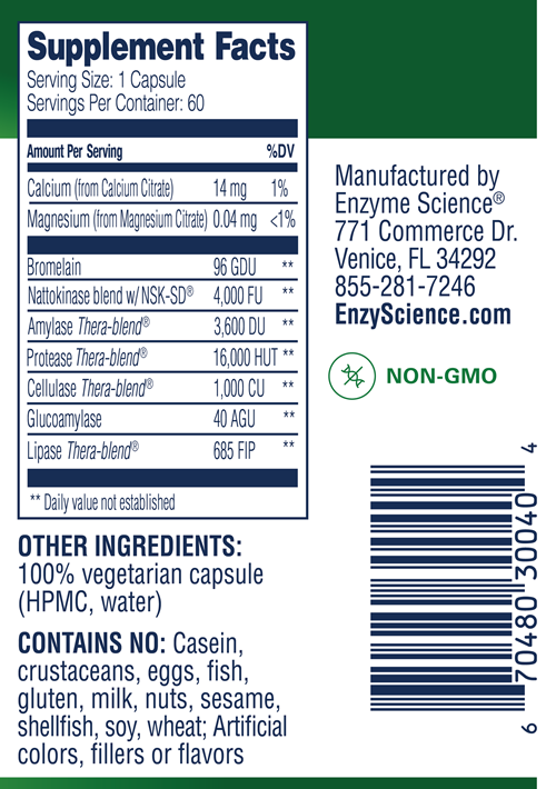 Nattokinase Pro™ contains cellulase, amylase, protease and lipase Thera-blend™ enzymes. Thera-blend is an exclusive process that combines multiple strains of enzymes that work in specific pH levels