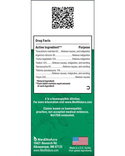 Gentle relief – 7 active ingredients including homeopathic Ipecacuanha, widely used for nausea and vomiting.†