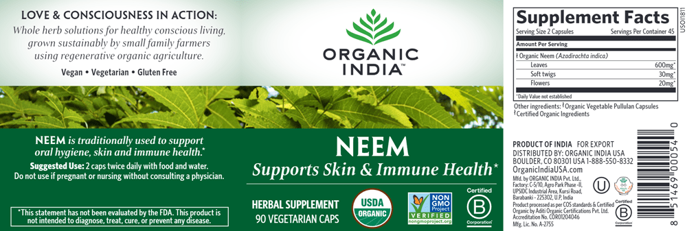 Organic India blends the highest quality, organically grown Neem leaves, twigs, and flowers to create this cleansing supplement.