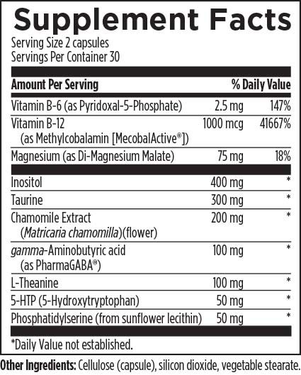 NeuroCalm™ contains PharmaGABA®, a form of GABA naturally manufactured through a fermentation process, which is considered more effective than chemically produced synthetic forms. Support for the production of calming neurotransmitters is also provided by L-theanine and taurine.