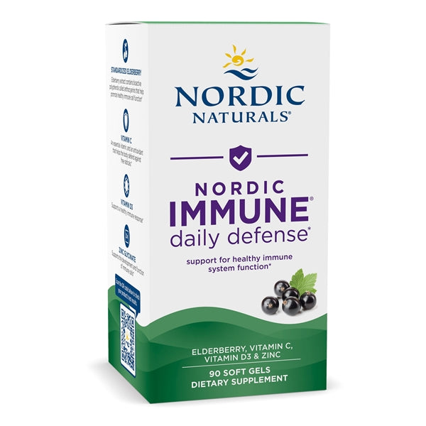 The immune system is your body’s frontline defense against invading pathogens. And while a number of different factors (age, stress levels, underlying health, sleep habits) contribute to your immune health, getting the right vitamins, minerals, and nutrients is essential to your body’s ability to respond to daily immune stressors. Nordic Immune Daily Defense helps answer this need with standardized elderberry, potent doses of vitamins C and D3, and chelated zinc glycinate for better absorption. It supports innate and adaptive immune cell functions throughout your body to help keep you well.*