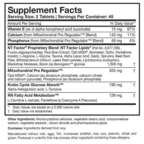 NT Factor® Energy promotes healthy mitochondrial membranes and provides key nutrients to the mitochondria, supporting ATP production.