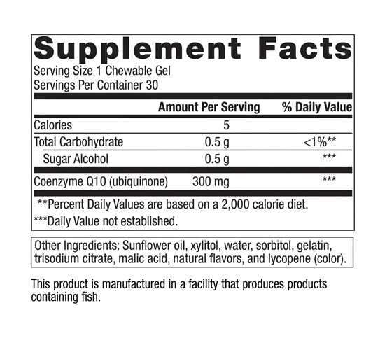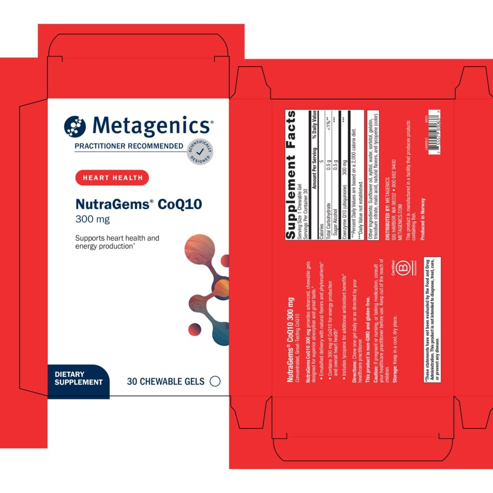 NutraGems CoQ10 300 features 300 mg of emulsified CoQ10, a naturally occurring substance essential for energy production and is of particular importance in supporting cardiovascular health. CoQ10 also has an array of anti-oxidative properties.* This unique formula contains natural flavor and lycopene for color.