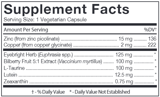 Balanced blend of herbs, minerals and vitamins to support eye health and replenish vital nutrients lost with age.*