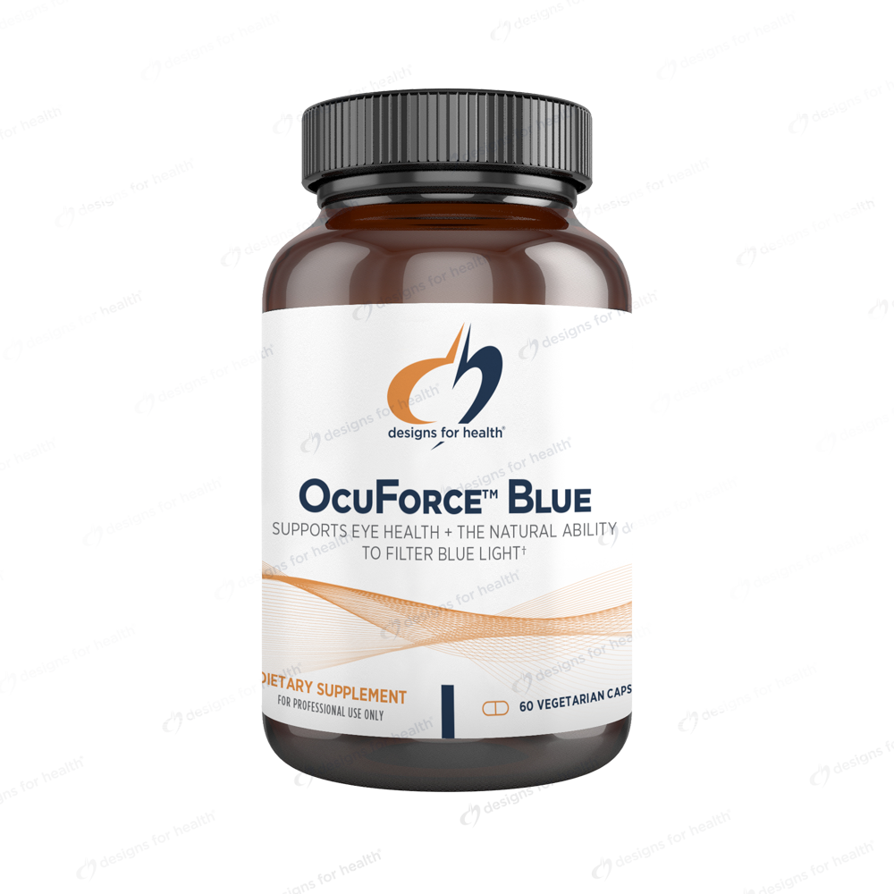This formula is a synergistic combination of lutein and zeaxanthin isomers (as Lutemax® 2020), maqui berry extract (as MaquiCare™), ginkgo, bilberry, astaxanthin (as AstaREAL®), and vitamin E isomers (as DeltaGold® delta- and gamma-tocotrienols) designed to help protect the eyes from blue light damage.* OcuForce™ Blue is ideal for the teenage years through late adulthood or for anyone with prolonged exposure to blue light from screens who are seeking a preventative approach to help maintain healthy vision.*