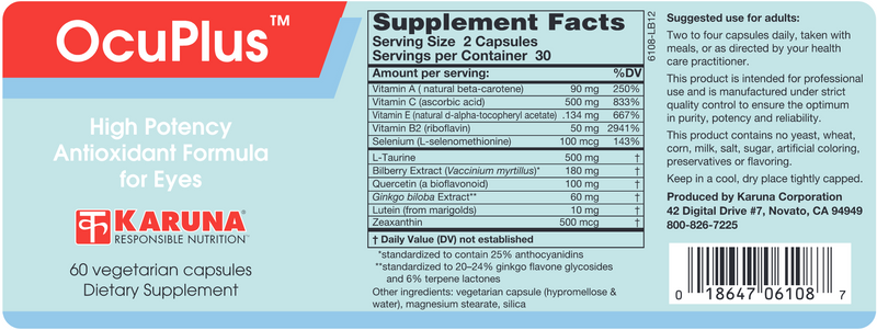 OcuPlus is a broad spectrum formula combining antioxidant nutrients and botanicals associated with protection of eye structures.*