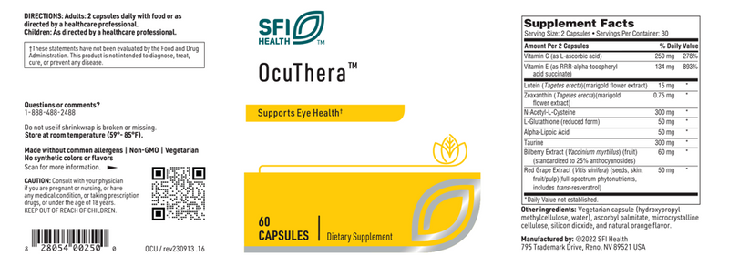 OcuThera™ supports the actions of MultiThera™ multivitamin formulas with key amino acids, antioxidants, and phytonutrients that protect and support your eye health.†