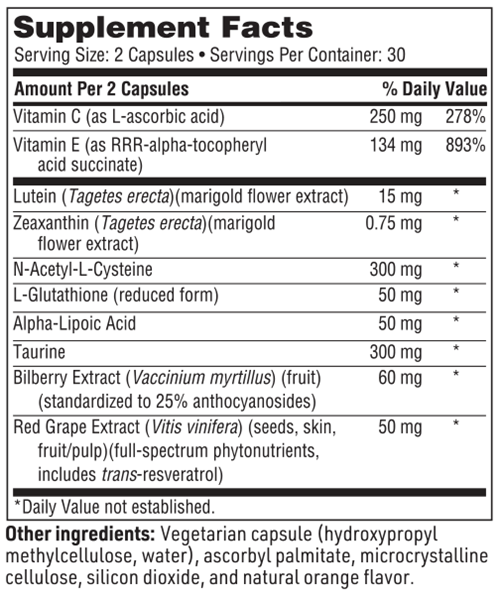 Visual tissues are highly susceptible to free radical damage from daily exposure to light radiation and oxygen. Lutein, bilberry, and other antioxidants help support natural antioxidant defense mechanisms of the ocular lens, retina, and macula.†