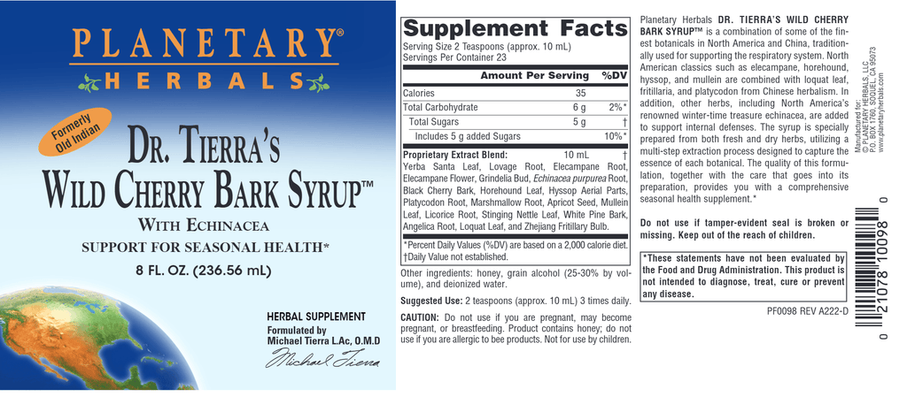 Old Indian Wild Cherry Bark was formulated by renowned herbalist Michael Tierra, L.Ac, O.M.D. Planetary Herbals is committed to developing clinically derived, experiential formulas - so you can be assured of obtaining the benefits you are seeking from a herbal product.