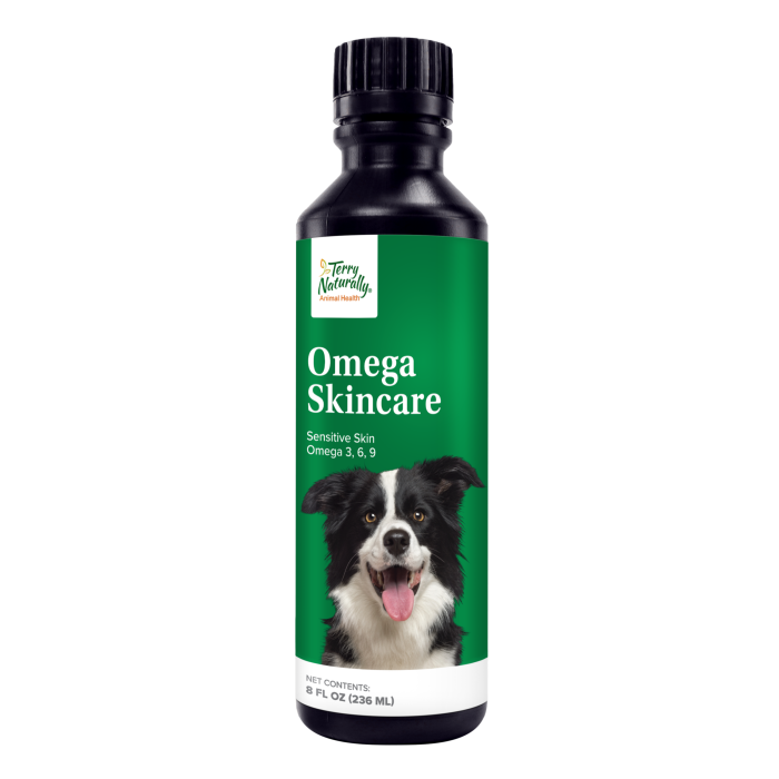 Omega SkinCare is a specially formulated blend of fatty acids that delivers support for dogs with sensitive skin. It combines organic flax, pumpkin, sunflower, and sesame oils with cod liver oil for the synergistic strength of omega-3, -6, and -9 plus EPA and DHA. Give to your dog daily for an easy way to support canine skin health in every season.