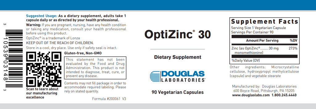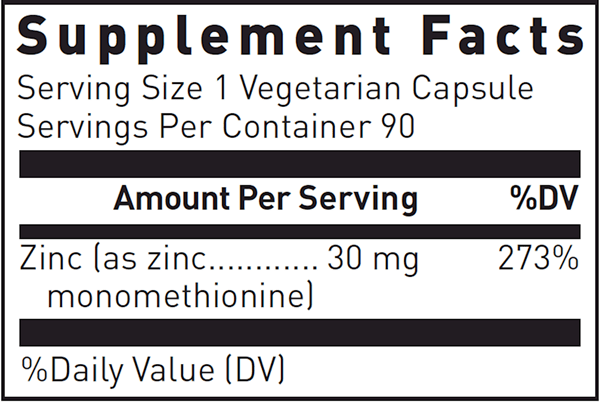 OptiZinc™ capsules, provided by Douglas Laboratories®, supply zinc monomethionine, an organic compound which provides zinc bound to the amino acid methionine in order to increase the bioavailability of zinc.
