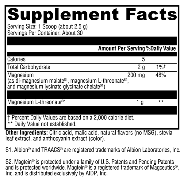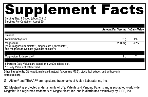 OptiMag® Neuro features magnesium L-threonate (as Magtein®), the only form of magnesium known to cross the blood-brain barrier. Complemented by highly absorbable Albion® di-magnesium malate and TRAACS® magnesium lysinate glycinate chelate, this formula is designed to boost the brain’s magnesium level. Magnesium is vital to supporting brain health and promoting healthy nervous system functions.*