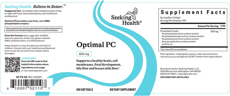 Optimal PC offers a convenient way to supply your body with the essential nutrient choline from phosphatidylcholine (PC). Each serving provides 800mg of phospholipid complex.†