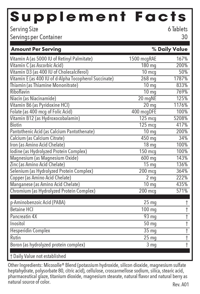 Suggested Use: Six tablets daily with meals as a dietary supplement, or as directed by a healthcare practitioner.