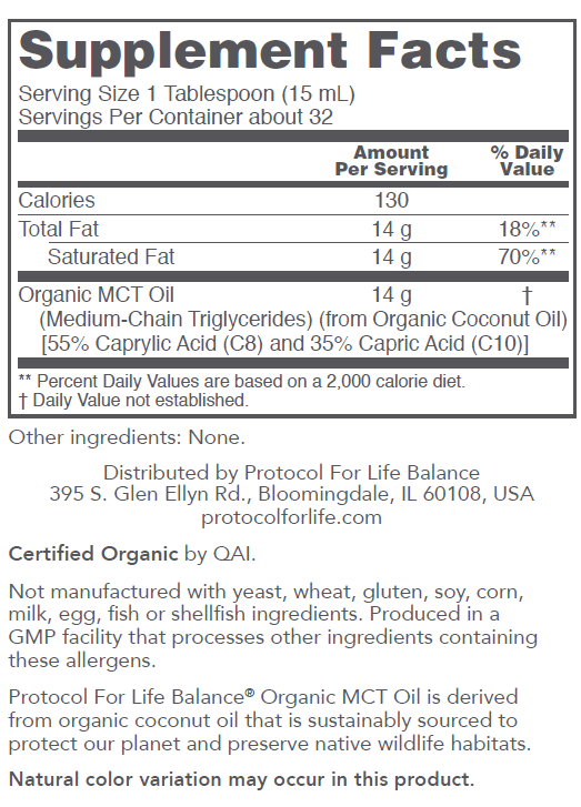 Protocol For Life Balance® Organic MCT Oil is derived from organic coconut oil that is sustainably sourced to protect our planet and preserve native wildlife habitats.