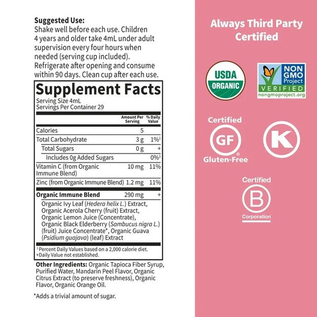 Trying to dislodge mucus and help soothe a cough is difficult. Cough & Mucus has a clean, Certified USDA Organic and Non-GMO Project Verified answer for you and your children. With Organic English Ivy Leaf, a traditional remedy to help clear mucus when coughing, this immune syrup† comes in both Adult and Kids versions. Also included are organic elderberry, zinc and vitamin C from organic acerola cherry for added immune system support.