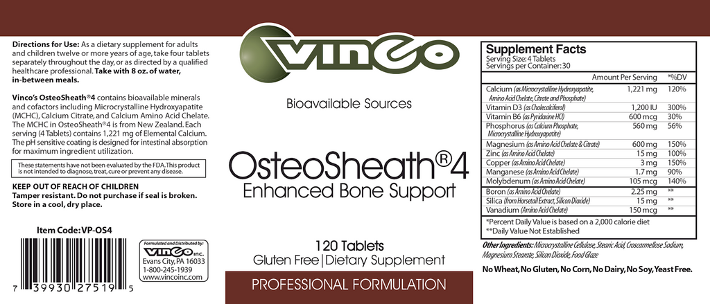 OsteoSheath®4 contains 1,221 mg of elemental calcium made up of the three most bioavailable forms of calcium available: MCHC, Calcium Amino Acid Chelate, and Calcium Citrate